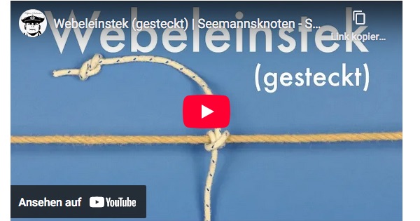 In diesem Video zeige ich, wie der Webeleinstek gesteckt wird. Man kann mit dem Webeleinstek z.B. einen Fender an einer Reling befestigen.